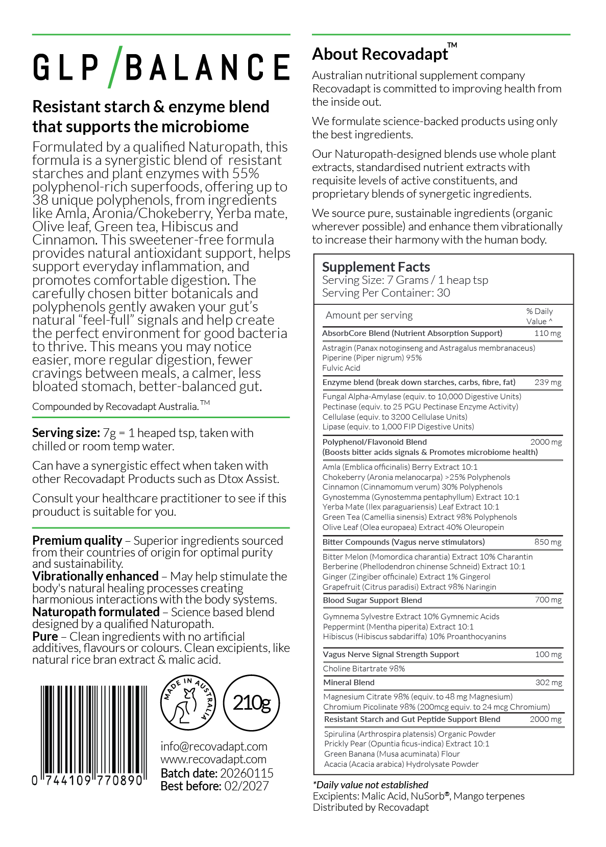 If you're taking prescription medication or managing a health condition, we recommend checking with your healthcare practitioner before starting any new supplement including GLP/Balance. Our team is also available at help@recovadapt.com.au if you have specific questions.